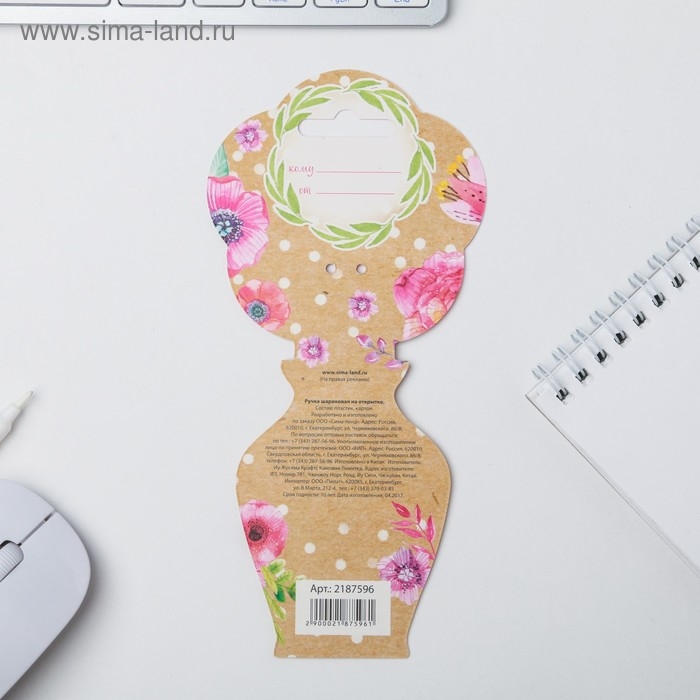 Ручка шариковая синяя паста «Цветок»,пластик, на подложке 8 марта
