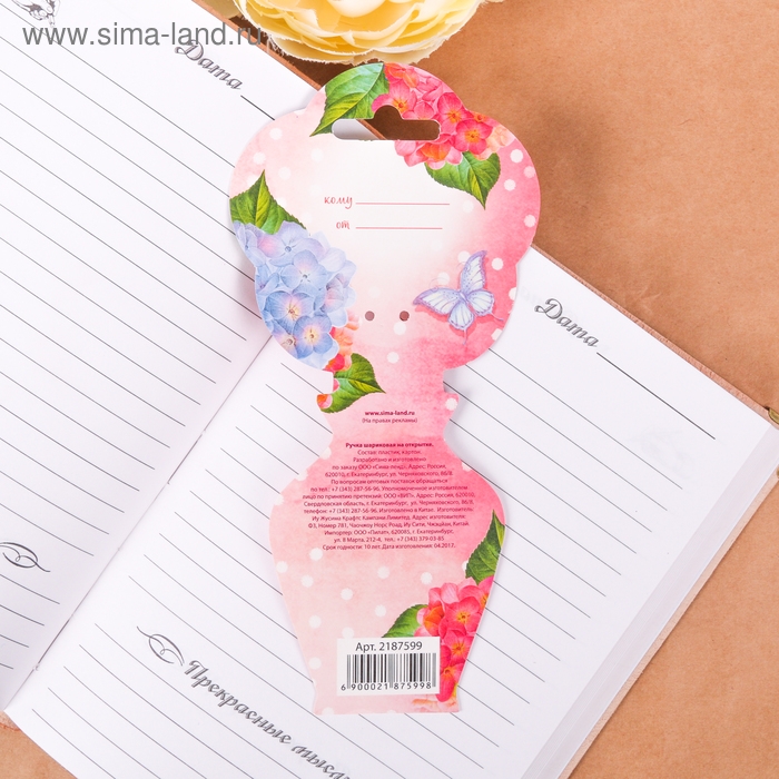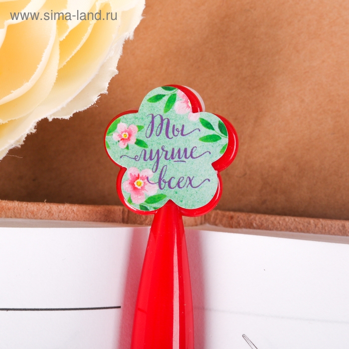 Ручка шариковая синяя паста «Цветок»,пластик, на подложке 8 марта