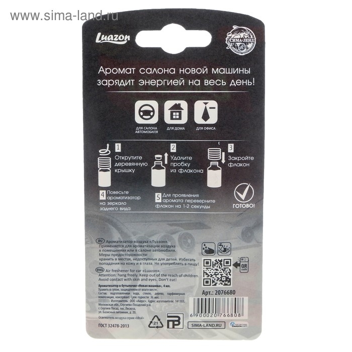Подвесной ароматизатор Luazon — отличное дополнение в салон автомобиля. Оригинальный дизайн удивит попутчиков, а приятный запах будет долго радовать владельца.
