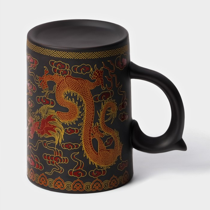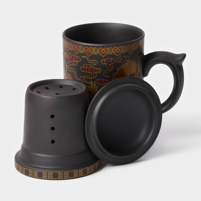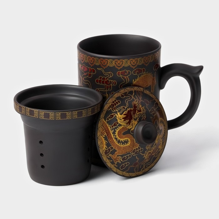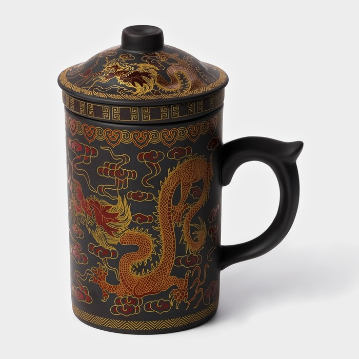 Кружка керамическая с крышкой и ситом «Золотой дракон», 350 мл