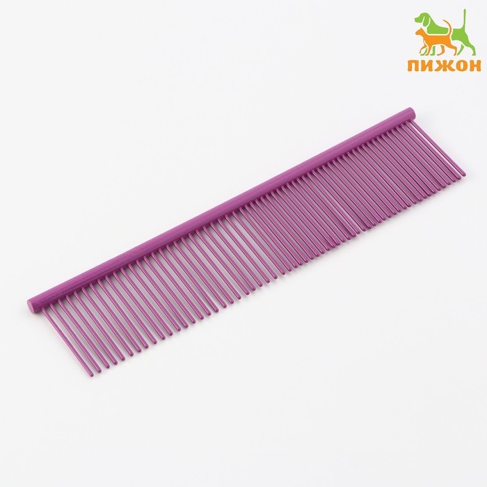 Расческа для шерсти с гальваническим покрытием, 18,8 х 4,2 см, фиолетовая