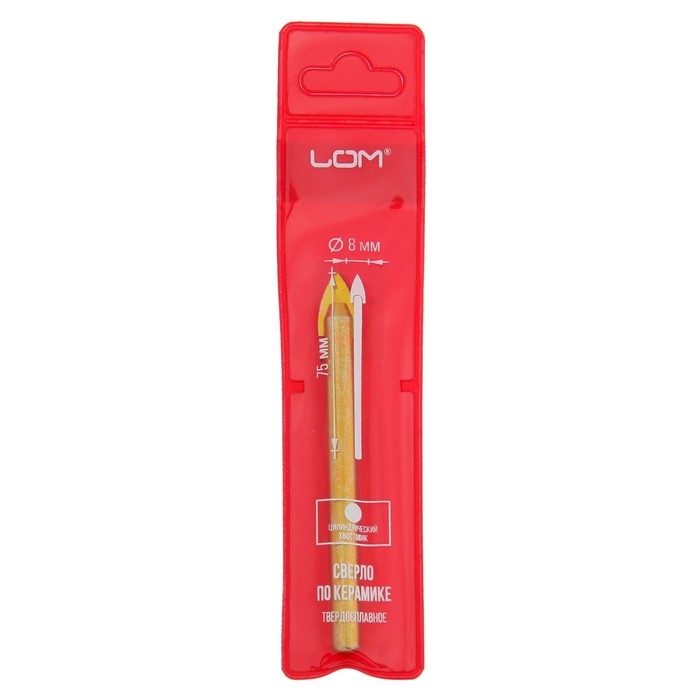 Сверло по керамике твердосплавное ЛОМ, цилиндрический хвостовик, 8 мм