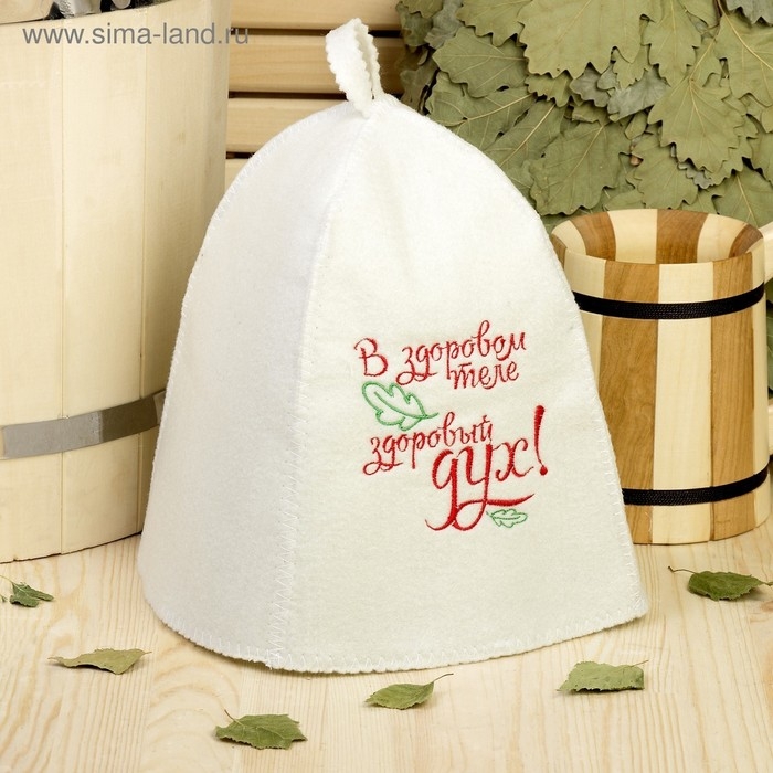 Шапка для бани с вышивкой "В здоровом теле здоровый дух", первый сорт