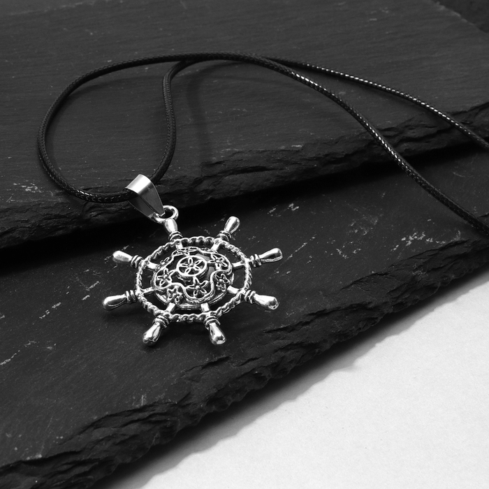 Кулон унисекс «Штурвал», цвет чернёное серебро на чёрном шнурке, 40 см