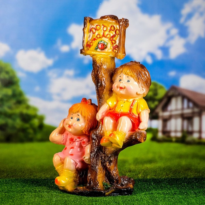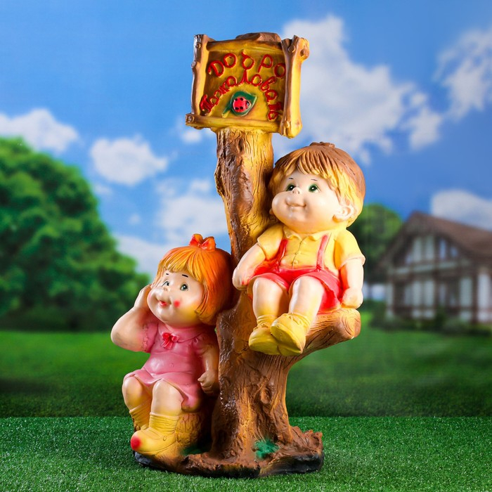 Садовая фигура "Мальчик и девочка на дереве", 40х31х66см, МИКС
