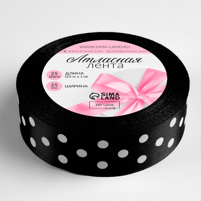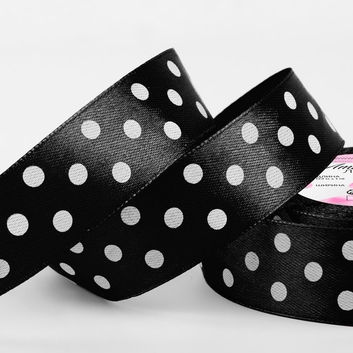 Лента атласная «Горошек», 25 мм × 23 ± 1 м, цвет чёрный №039