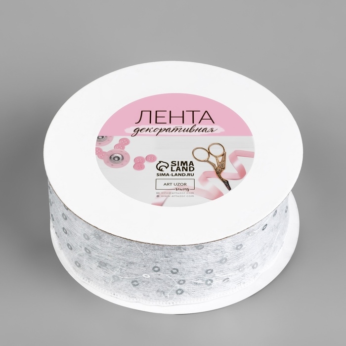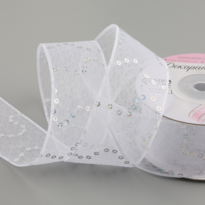 Лента декоративная «Пайетки», 40 мм, 9 ± 0,5 м, цвет белый №1