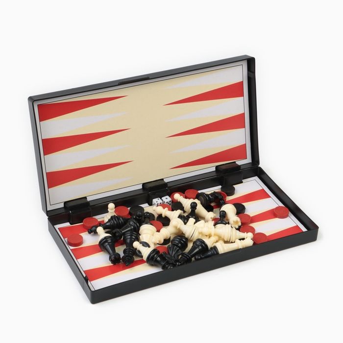 Настольная игра 3 в 1 "Зук": нарды, шахматы, шашки, магнитная доска 24.5 х 24.5 см