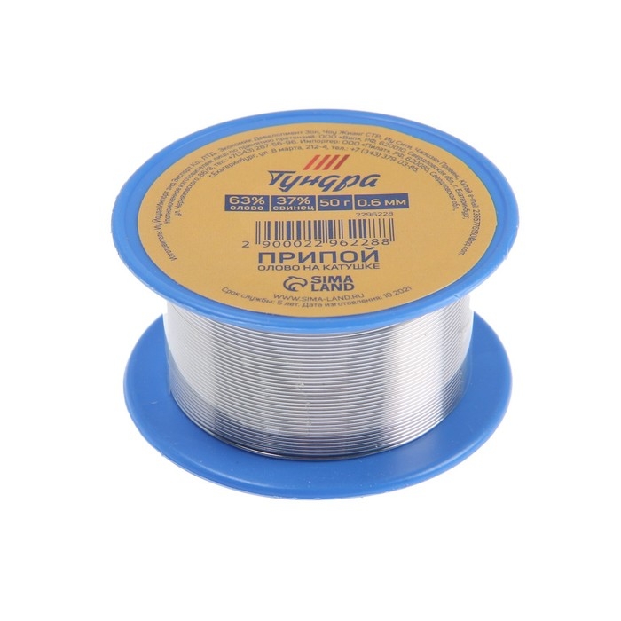 Припой ТУНДРА, ПОС 63, на катушке, 0.6 мм, 50 г