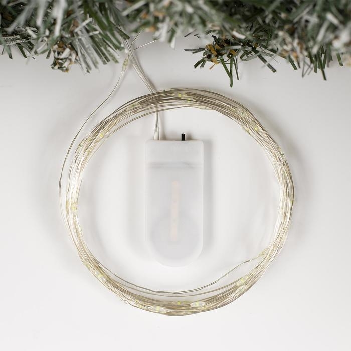 Гирлянда «Нить» 5 м роса, IP20, серебристая нить, 50 LED, батарейки CR2032х2 (в комплекте), свечение зелёное