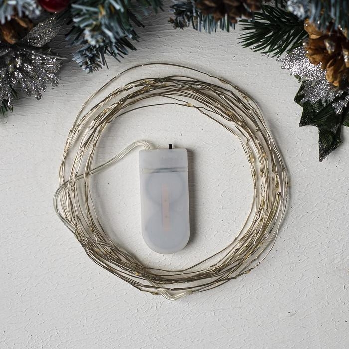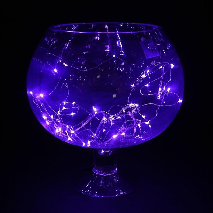Гирлянда «Нить» 5 м роса, IP20, серебристая нить, 50 LED, батарейки CR2032х2 (в комплекте), свечение фиолетовое