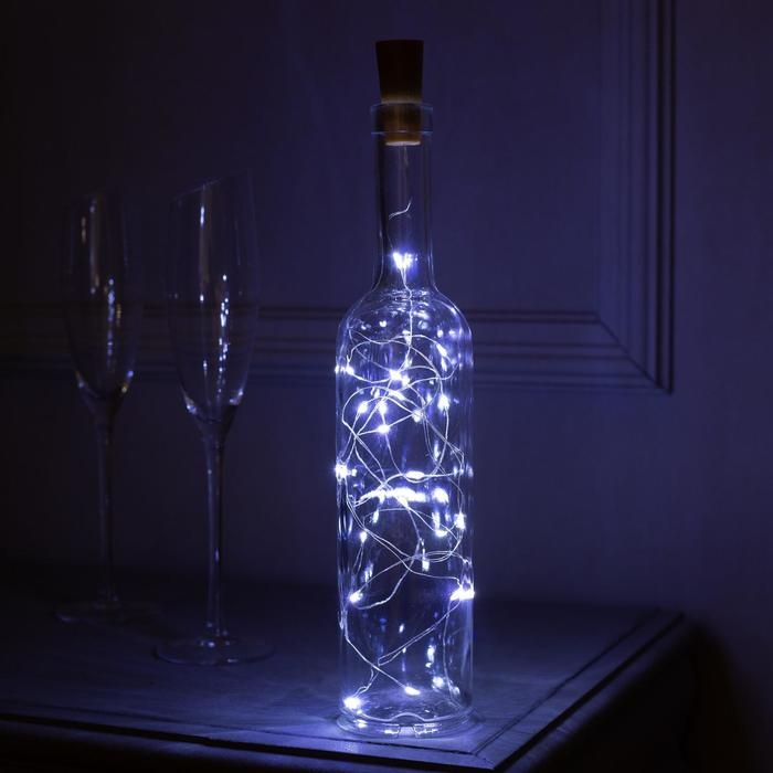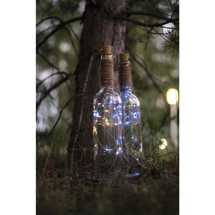 Гирлянда «Нить» 2 м роса с пробкой, IP20, серебристая нить, 20 LED, батарейки LR44х3 (в комплекте), свечение белое