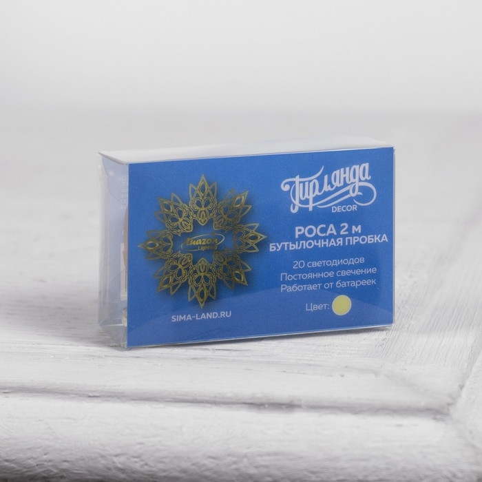 Гирлянда «Нить» 2 м роса с пробкой, IP20, серебристая нить, 20 LED, батарейки LR44х3 (в комплекте), свечение тёплое белое