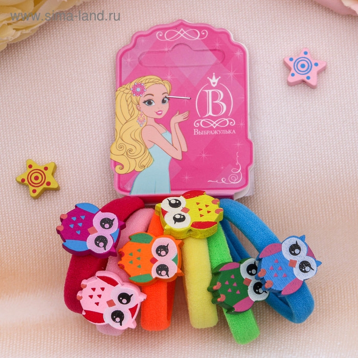 Резинка для волос "Деревяшечка" (набор 6 шт) совушка