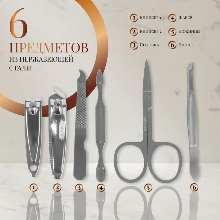 Набор маникюрный, 8 предметов, в футляре, цвет коричневый