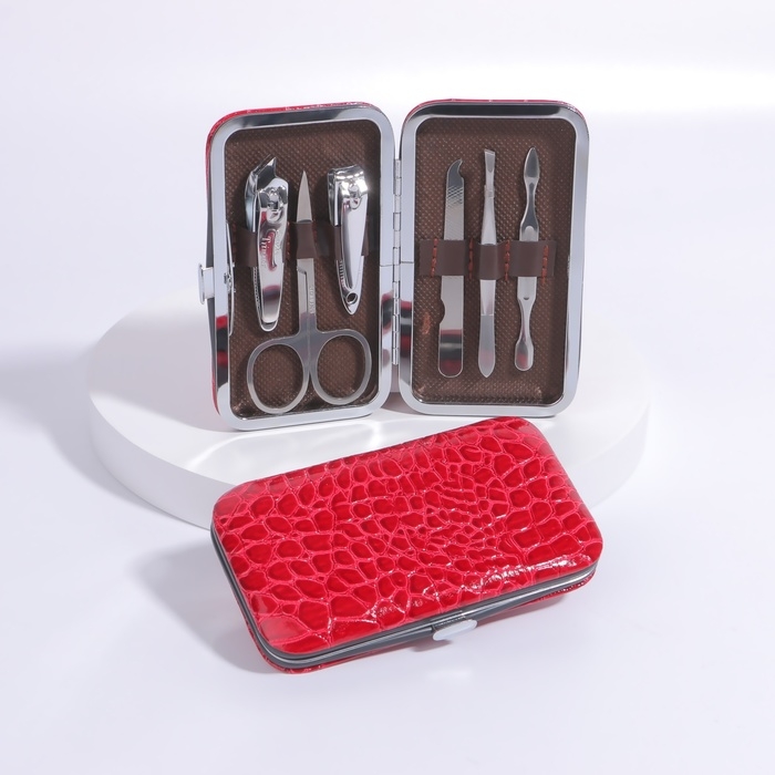 Набор маникюрный «Крокодил», 6 предметов, в футляре, цвет красный