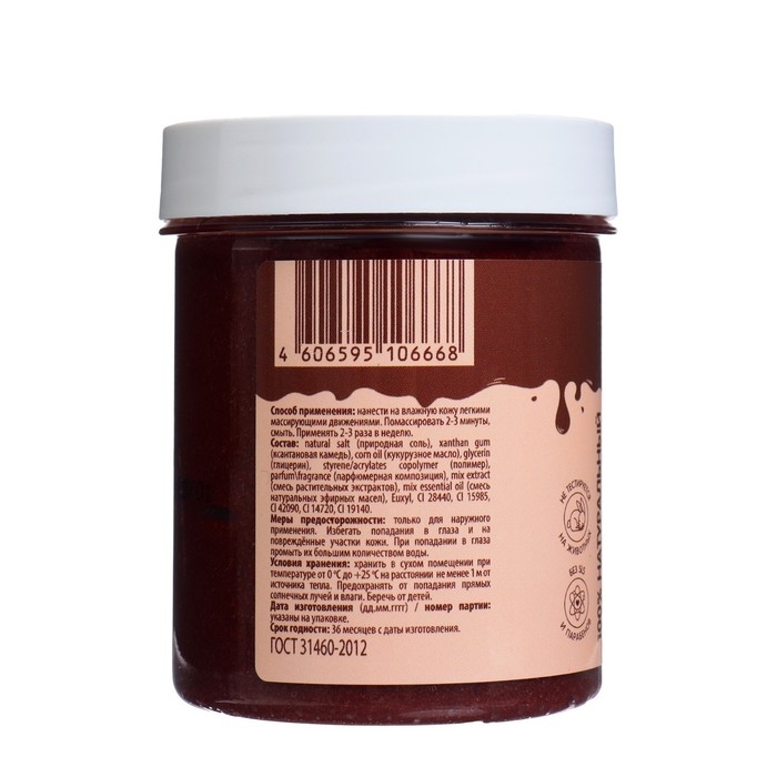 Соляной скраб для тела бережно очищает и обновляет кожу, повышает упругость и эластичность, придавая ей невероятную нежность и мягкость. Деликатные отшелушивающие частички выравнивают поверхность кожи, активизируя кровоснабжение подкожных тканей, способствуют обновлению клеток эпидермиса. Витамин С и салициловая кислота очищают кожу от мертвых клеток и других загрязнений, тонизирует и питает кожу любого типа. Аромат шоколада повышает настроение. Смесь натуральных масел в составе, помогает справиться с растяжками и улучшить состояние кожи. Имеет антицеллюлитный эффект, бережно очищает, омолаживает и обновляет кожу.