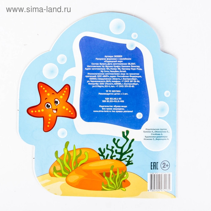 Раскраска с наклейками «Подводный мир», 16 стр.