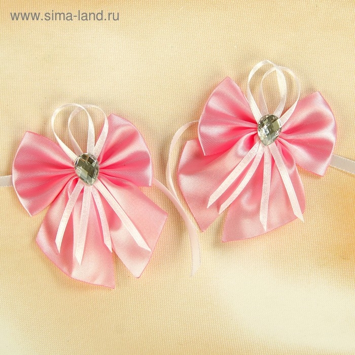 Бант-бабочка свадебный для декора, атласный, 2 шт, розовый