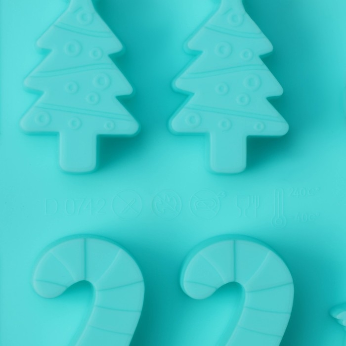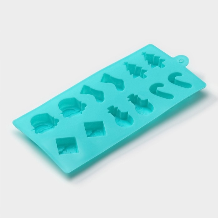 Форма для конфет и шоколада новогодняя Доляна «Новый год», силикон, 21,5×10 см, 12 ячеек, цвет бирюзовый