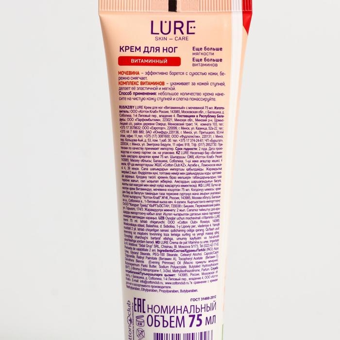Крем для ног Lure витаминный с мочевиной, 75 мл