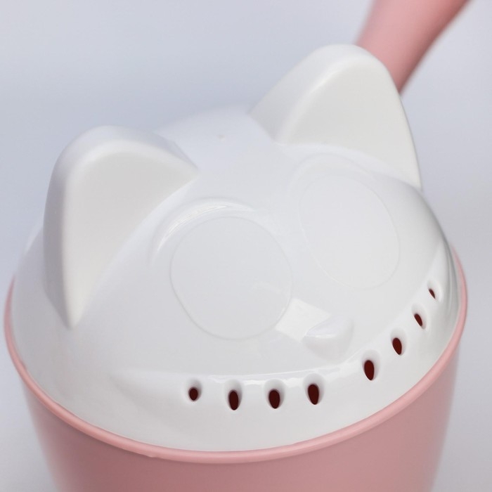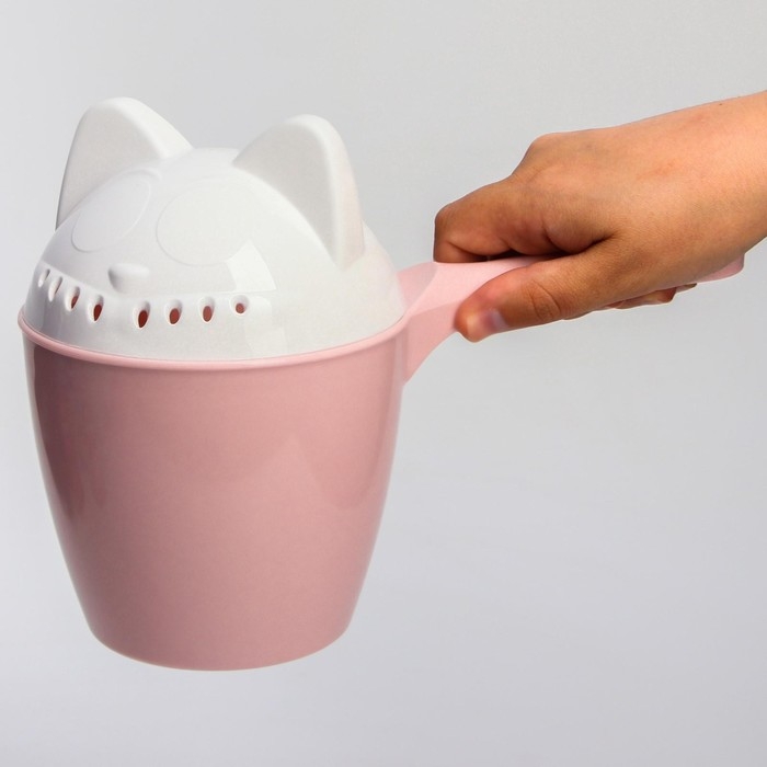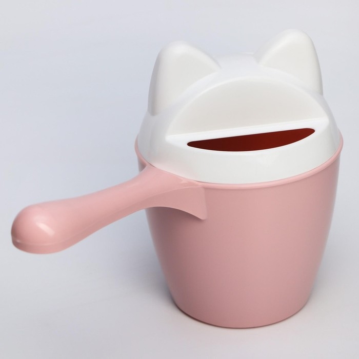 Ковш пластиковый для купания и мытья головы, детский банный ковшик «Котенок», 400 мл., с леечкой, цвет розовый