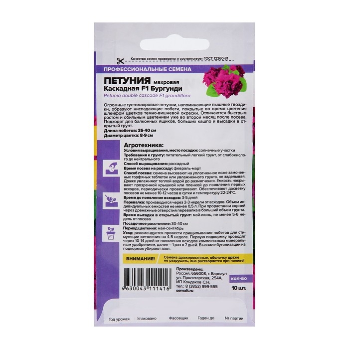 Семена цветов Петуния "Бургунди Каскадная" махровая F1, О, цп, 10 шт.