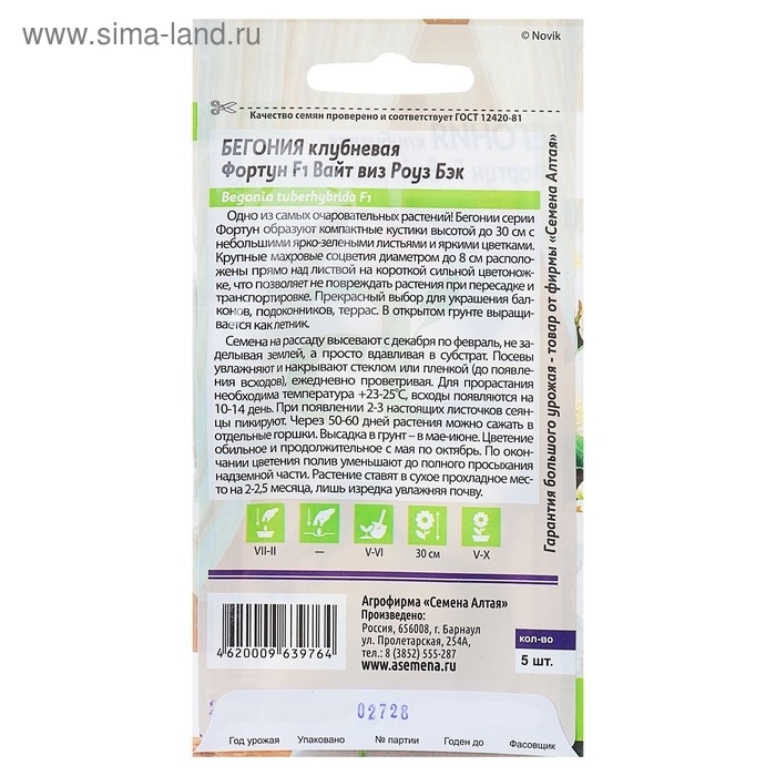 Семена комнатных цветов Бегония "Вайт виз Роуз", 4 шт