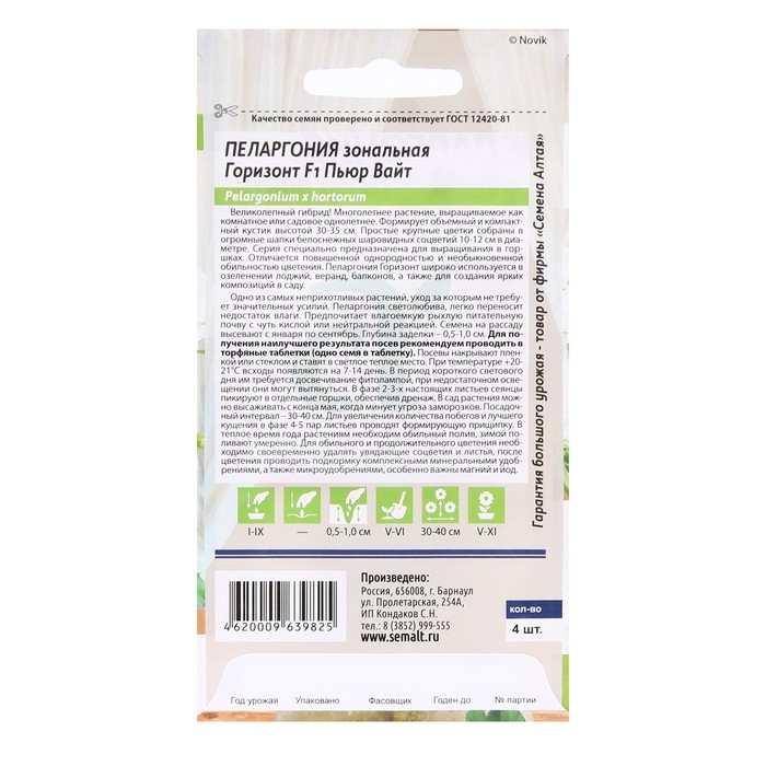 Семена комнатных цветов Пеларгония "Горизонт Пьюр Вайт", 3 шт