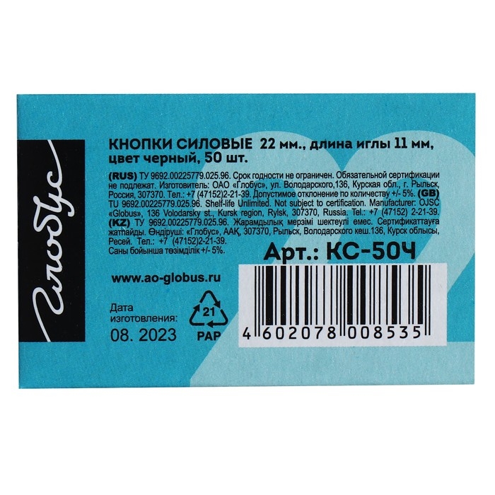 Кнопки силовые GLOBUS, 50 шт., чёрные