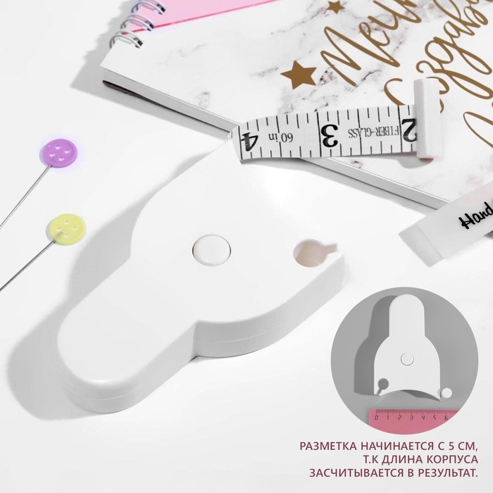 Рулетка для измерения объёмов тела портновская, 150 см (см/дюймы), цвет белый