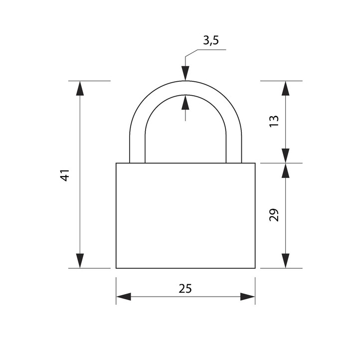Замок навесной, тип 10, 25х42 мм, 2 ключа