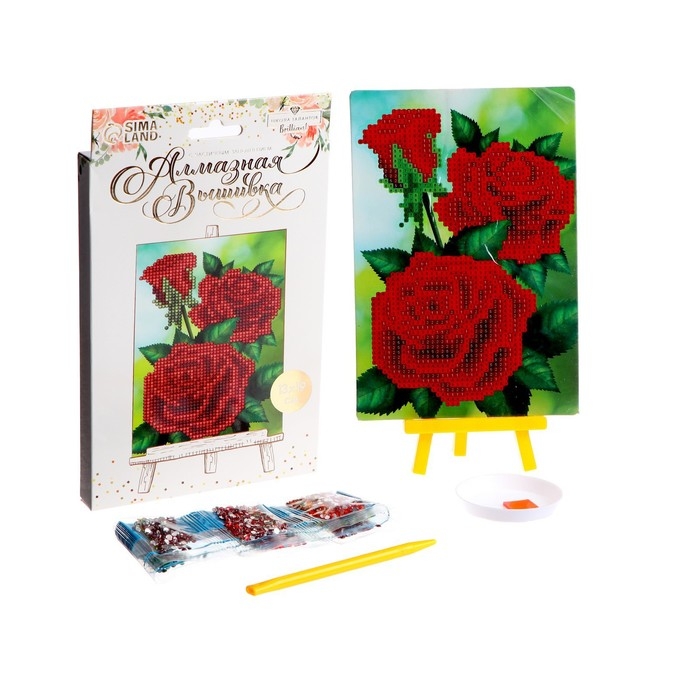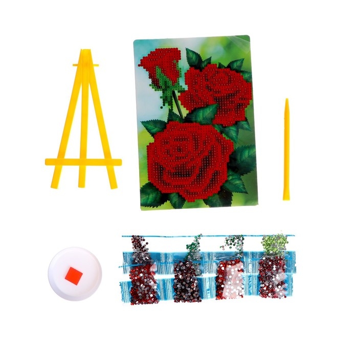 Алмазная мозаика с частичным заполнением на подставке «Розы», 13 х 19 см, картон