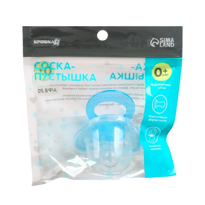 Соска - пустышка силиконовая классическая, от 0 мес., с колпачком, цвет голубой
