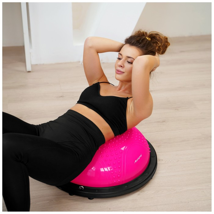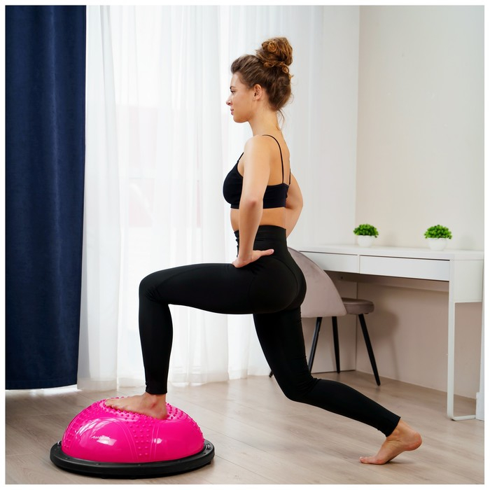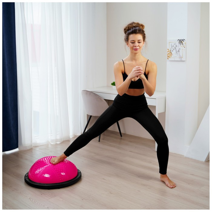 Полусфера BOSU гимнастическая ONLYTOP, массажная, с насосом, 55х25 см, цвет розовый