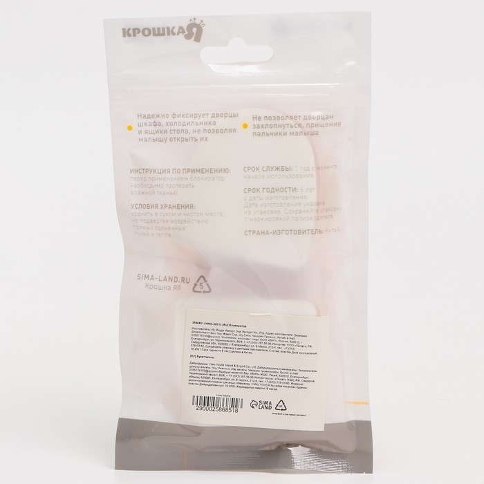 Набор блокираторов для дверей и ящиков, универсальные, 17 см, 2 шт., цвет белый/прозр, Крошка Я