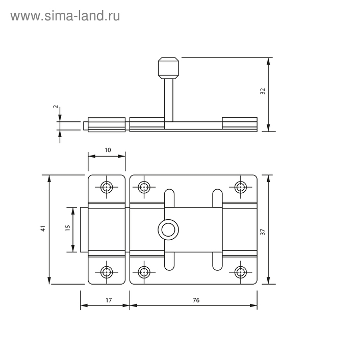Задвижка дверная ЗД 008, 75 мм, под навесной замок, черный