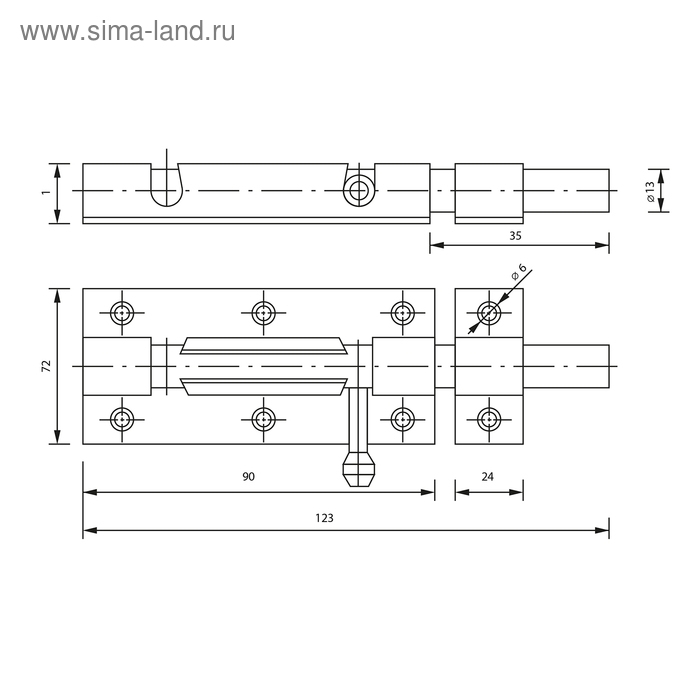 Задвижка дверная , 90 мм по основанию, оцинкованная