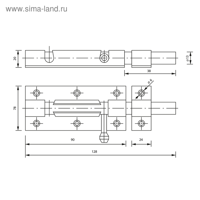 Задвижка дверная, 90 мм по основанию, под навесной замок, оцинкованная