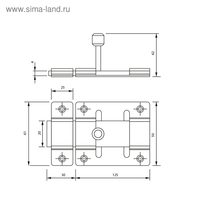 Задвижка дверная ЗД 002, 125 мм, под навесной замок, оцинкованная