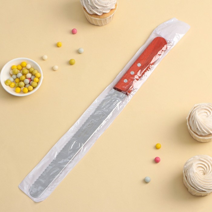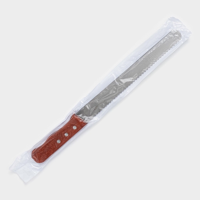 Нож для бисквита, ровный край, ручка дерево, длина лезвия 25 см, цвет коричневый