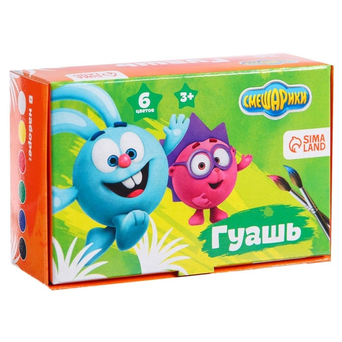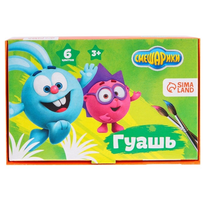 Гуашь 6 цветов по 20 мл, «Смешарики», карамельная