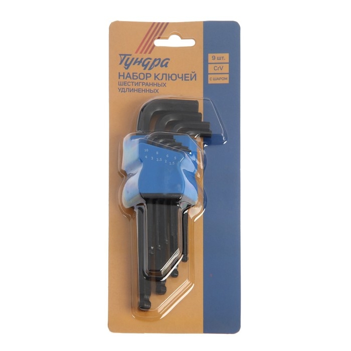 Набор ключей шестигранных ТУНДРА black, удлиненных. с шаром, CrV, 1.5 - 10 мм, 9 шт.