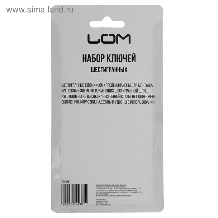Набор ключей шестигранных марки LOM предназначен для монтажных и демонтажных работ.