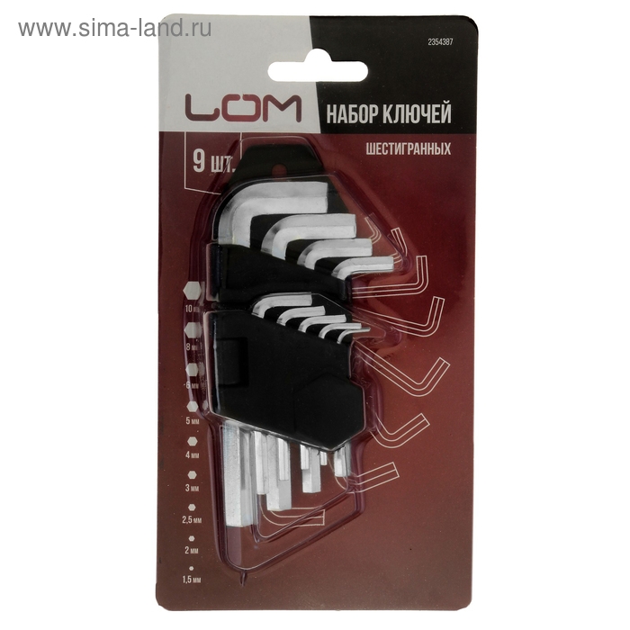 Набор ключей шестигранных ЛОМ, 1.5 - 10 мм, 9 шт.