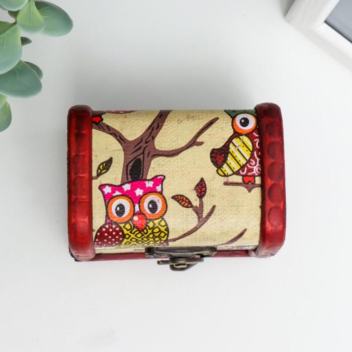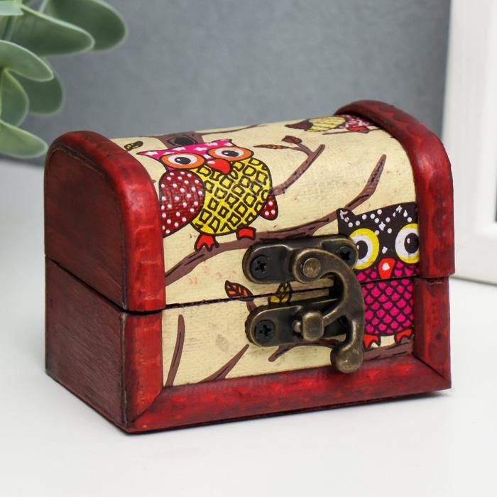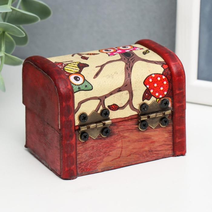 Шкатулка дерево сундучок "Совята" 6х8х5,5 см