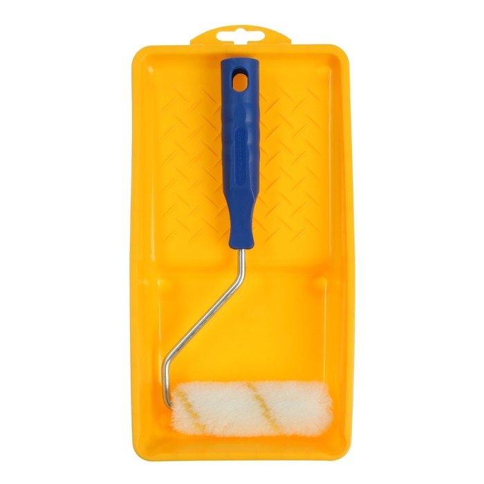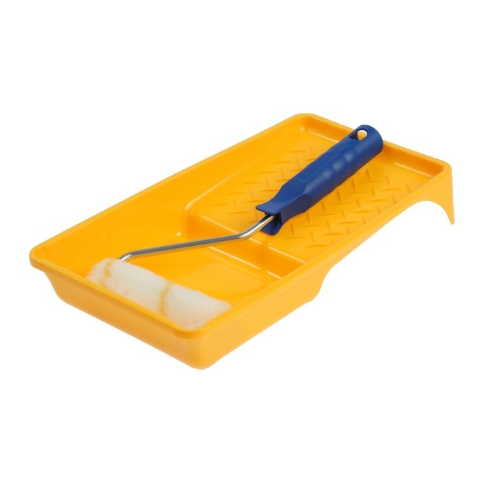 В комплекте есть валик из полиамида и пластиковая ванночка. Комплект подойдёт для домашнего использования.