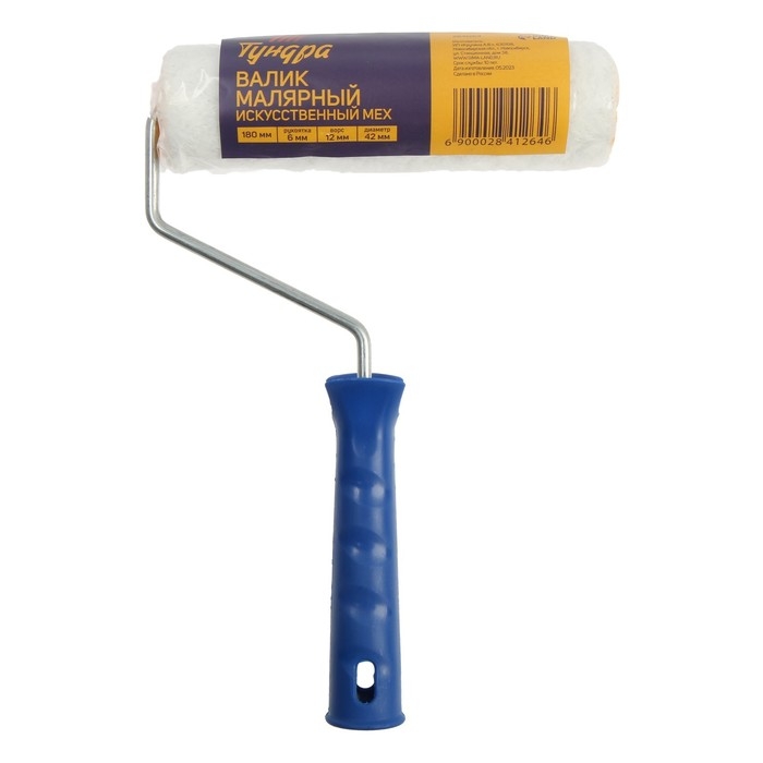 Валик ТУНДРА, искусственный мех, 180 мм, рукоятка d=6 мм, D=42 мм, ворс 12 мм