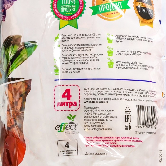 Грунт для орхидей Effect+, с дренажным камнем, фракция 20-40, 4 л