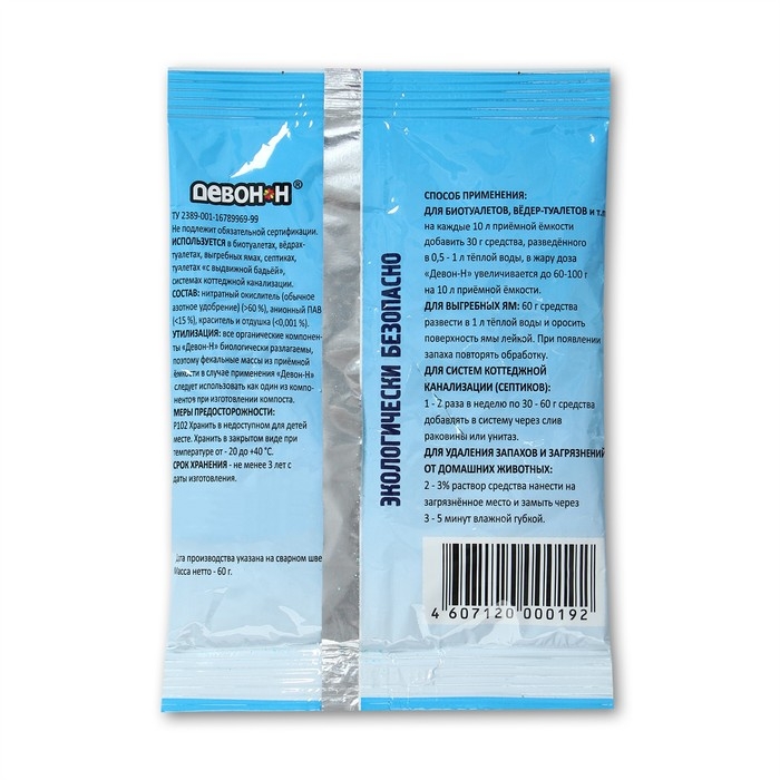 Порошок для выгребных ям, септиков и биотуалетов нижнего бака «Девон-Н», 60 г